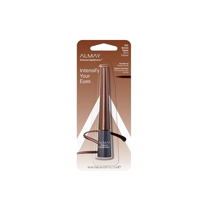 Almay Liquid Eyeliner, Waterproof, Fade-Proof Eye Makeup, Easy-to-Apply Liner Brush, 224 Brown Topaz, 0.08 Oz